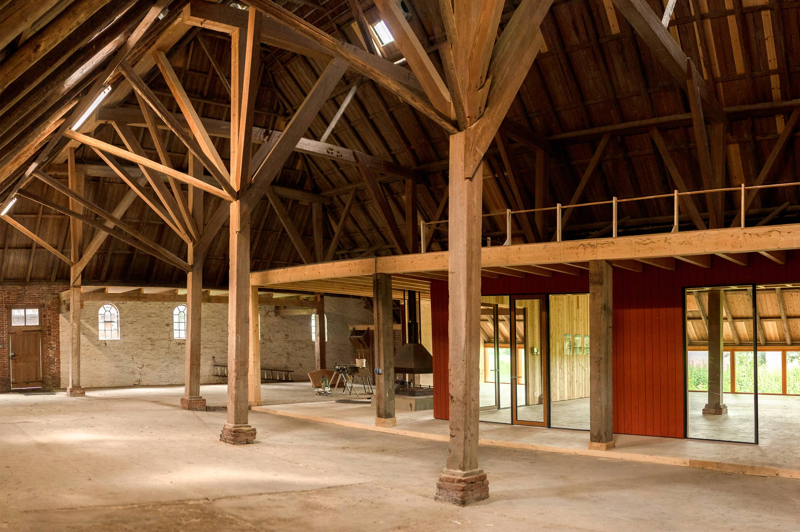 Marco vervolgt: Naast het toevoegen van een wooneenheid wilden we de schuren beschikbaar maken voor activiteiten met een maatschappelijke functie. Bijvoorbeeld als podium voor culturele activiteiten, of voor activiteiten van de kerk of het buurthuis. Het wil overigens niet zeggen dat er nooit meer iets met de woonhuizen van de boerderijen zal gebeuren. Maar door het op deze manier aan te pakken, hebben we de tijd om rustig na te denken wat voor definitieve herbestemming we de voorhuizen uiteindelijk willen geven.